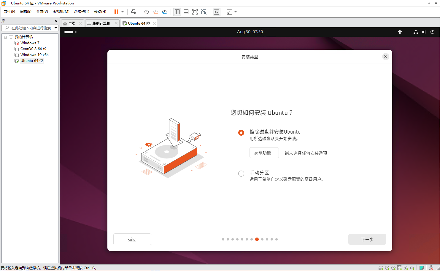 6、设置磁盘大小,即ubuntu可使用的大小,一般学习用40g差不多,然后点击完成,随后等待启动